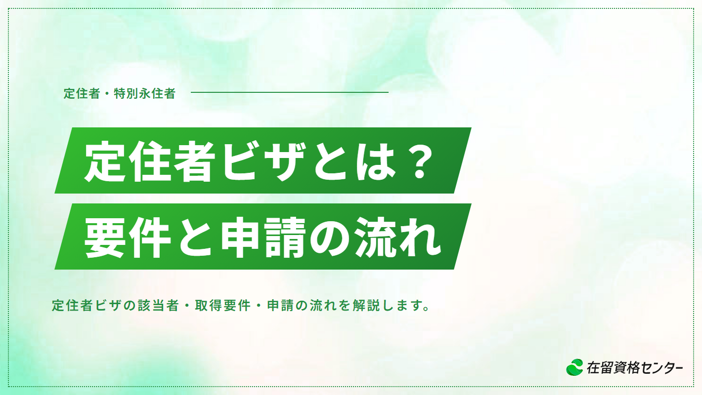 定住者ビザ(在留資格「定住者」)は、法務大臣が特別な理由を考慮して一定の在留期間を指定して居住を認める在留資格です。入管法別表第二に規定されており、「永住者」「日本人の配偶者等」「永住者の配偶者等」と並ぶ身分系の在留資格に分類されます。