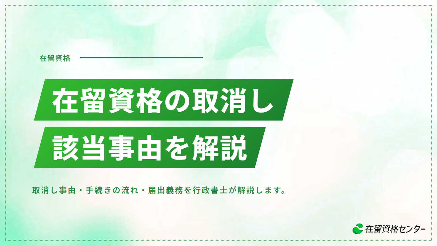 在留期間の満了による失効とは性質が異なります。取消しはあくまで入管側の職権による行政処分であり、在留資格を持つ外国人に対して「本来この在留資格を与えるべきではなかった」または「在留資格に見合った活動をしていない」と判断された場合に発動されます。