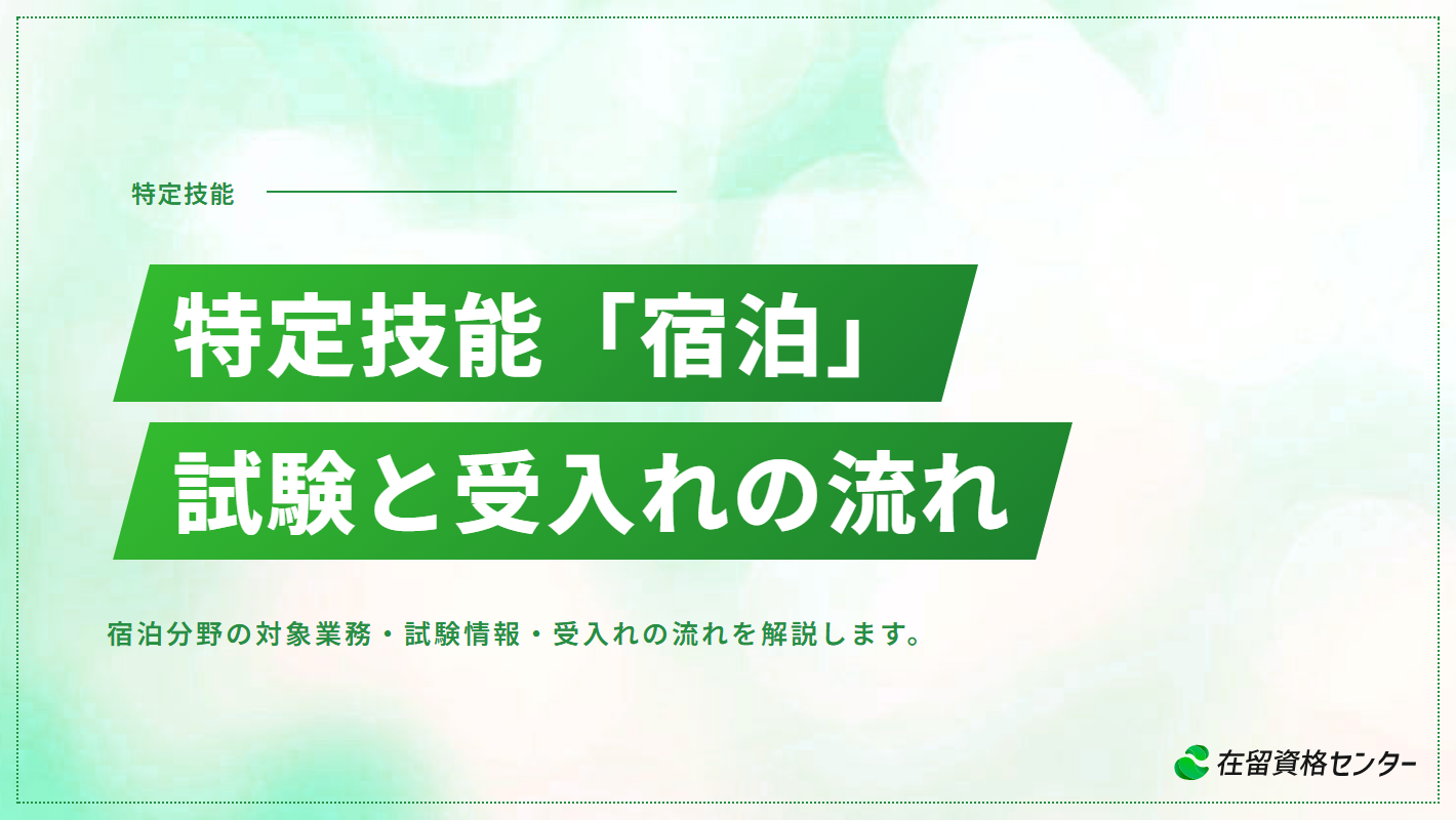 (申請の現場では「客室清掃だけお願いしたい」という相談を受けることがありますが、客室清掃のみでは宿泊分野の特定技能の業務要件を満たしません。清掃業務は付随的に行うことは問題ありませんが、主たる業務はフロント・接客・レストランサービス等でなければならない点を受入れ企業には必ず説明しています)