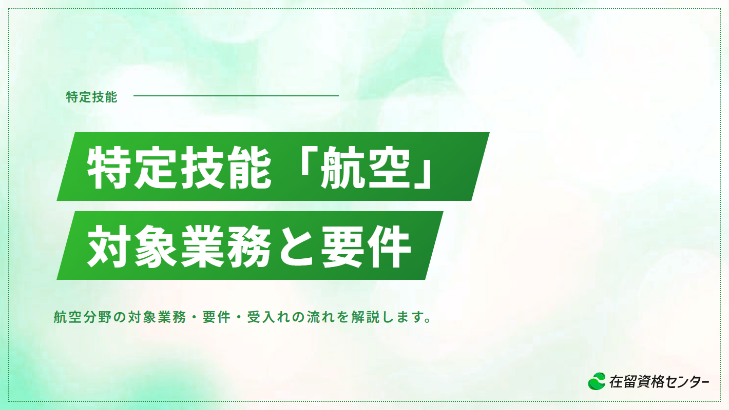特定技能「航空」は、空港の運営を支える人材を確保するための在留資格です。航空分野は他の特定技能分野と比べて受入れ人数の規模は小さいものの、空港という特殊な就労環境ゆえに固有の要件や注意点があります。対象業務は空港グランドハンドリングと航空機整備の二つに限定されており、受入れ企業も空港関連事業者に絞られます。実務上は、保安要件や業務範囲の整理で手間取る企業が多い分野です。この記事では、航空分野の特定技能について、業務区分・試験・受入れ要件・注意点まで実務で押さえるべきポイントを解説します。